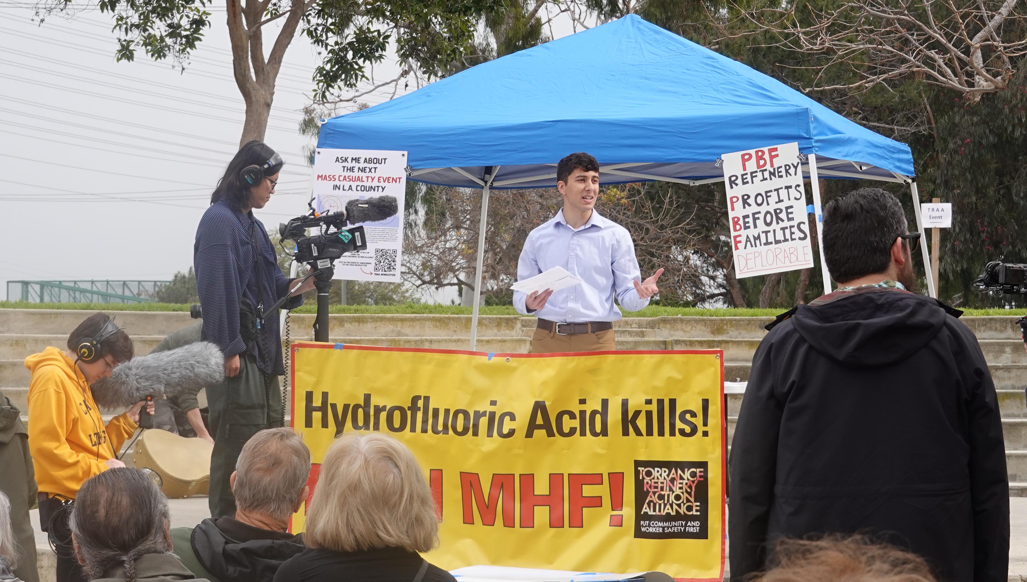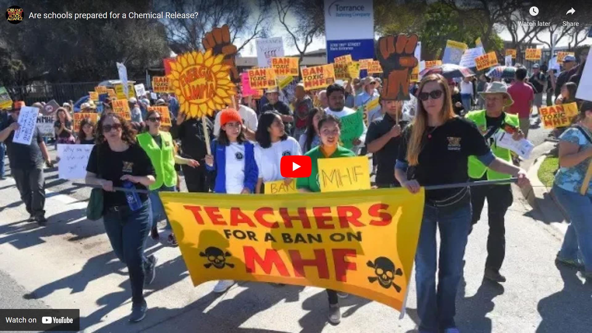 Among the world’s most dangerous industrial chemicals, hydrogen fluoride (HF) is used in massive quantities in only two of California’s 15 refineries: the Torrance Refining Company (ToRC) and Valero in Wilmington — both located in the densely populated South Bay region of Southern California. In a major accidental release, as shown in an alarming video of the 1987 “Goldfish” test in the Nevada desert, HF can form a ground-hugging aerosol cloud that can drift for miles, causing irreversible injury and death.