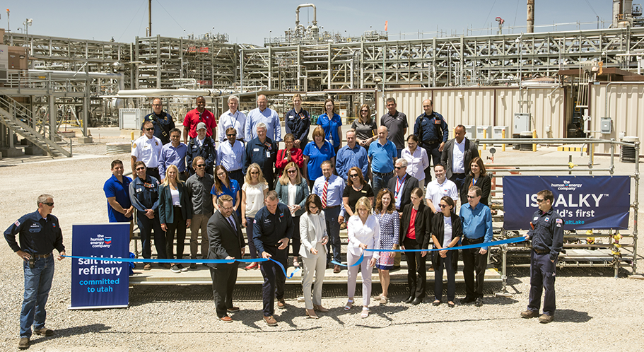 Photo of Chevron workers opening new ISOALKY unit in June 2021.