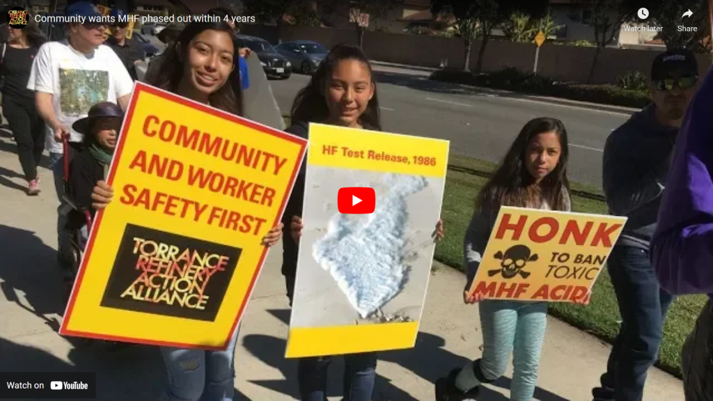 The Torrance Refinery Action Alliance’s short public information videos on crucial aspects of the effort to ban hydrogen fluoride use at the two refineries in Southern California’s South Bay. Also find below other important videos and slide shows.