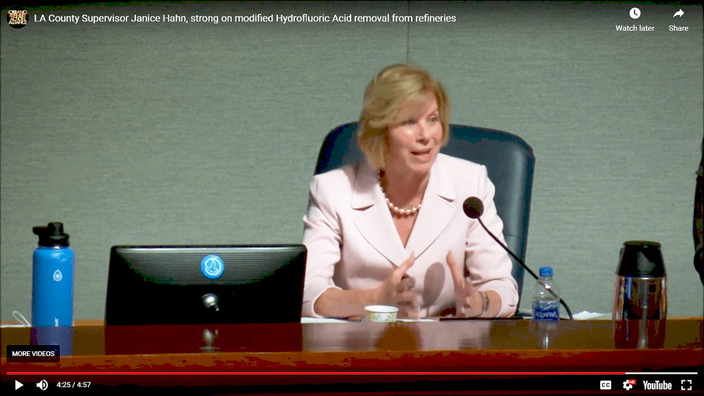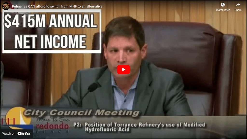 TRAA’s short one-minute video featuring Torrance resident Michelle Rushton speaking at a Southern California AQMD meeting in Torrance on the impact of potentially catastrophic hydrofluoric acid from the Torrance and Valero refineries in the South Bay of Southern California.